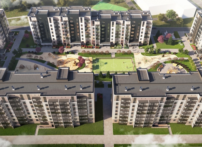 Просторный закрытый двор-парк с зелеными насаждениями и пешеходными дорожками создает уютную атмосферу и располагает к общению между жителями. Благодаря приватному двору без автомобилей, дети и взрослые чувствуют себя безопасно и свободно.