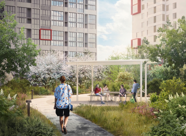 Озеленение станет ещё одним достоинством: здесь запланирована высадка крупномерных деревьев и кустарников.