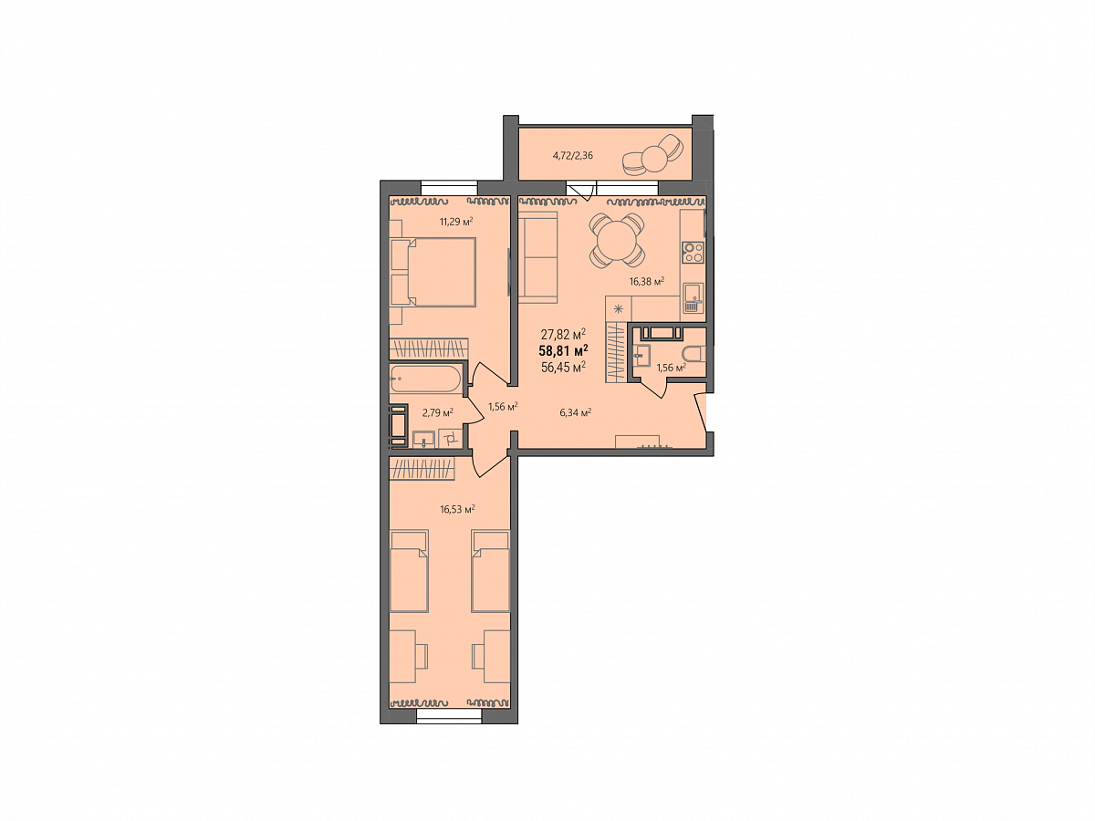3 комнаты, 60.9 м², 10/10 эт