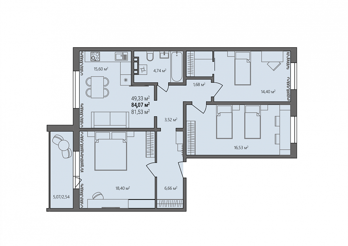 3 комнаты, 86.7 м², 7/10 эт