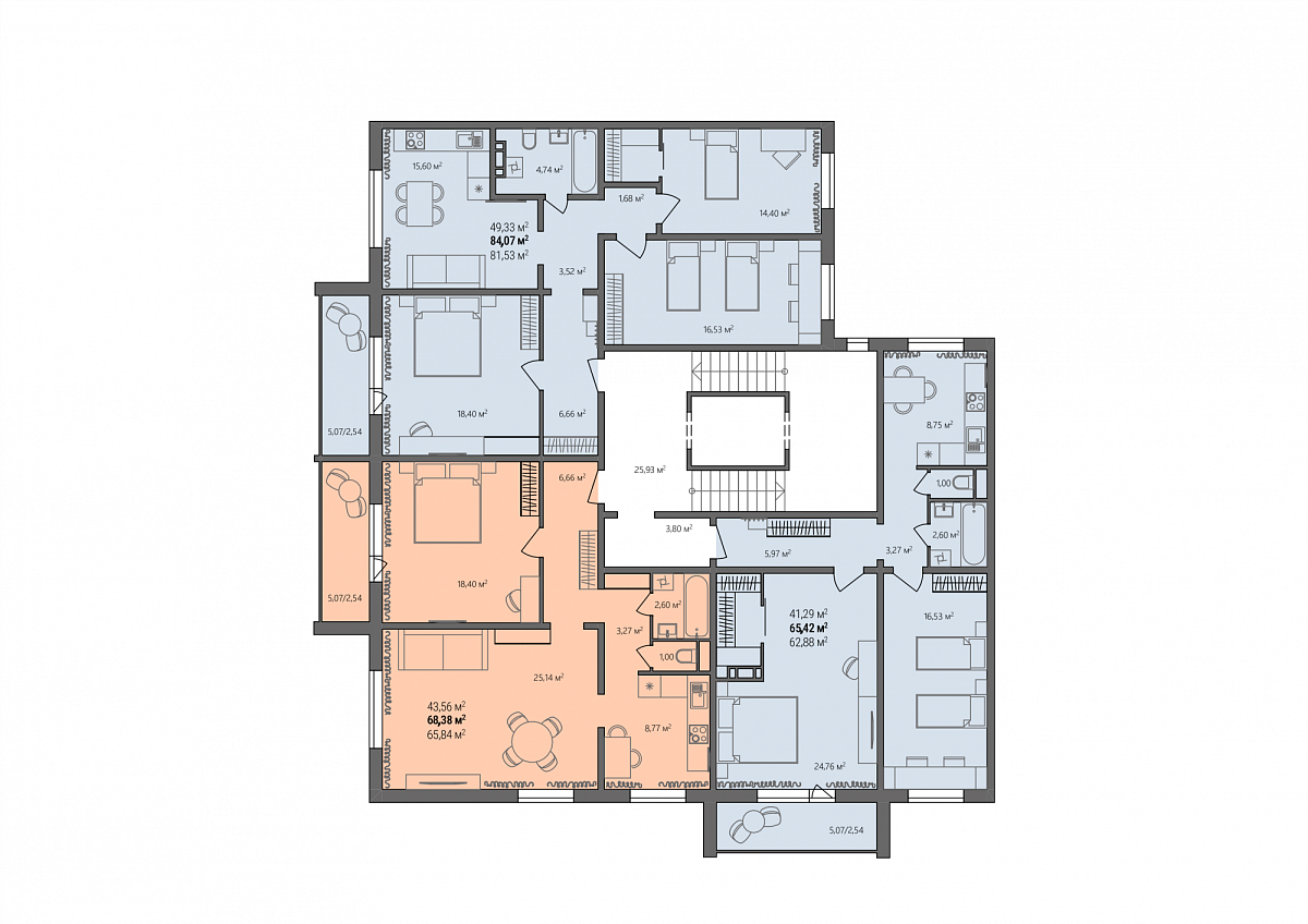 В проекте представлены квартиры с разными планировками и вариантами отделки — от white box до полностью готовых решений. Есть как квартиры в сданных домах с возможностью сразу получить ключи, так и в строящихся домах.