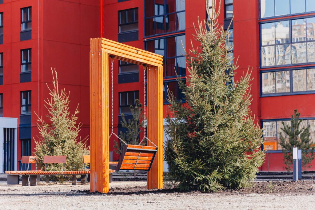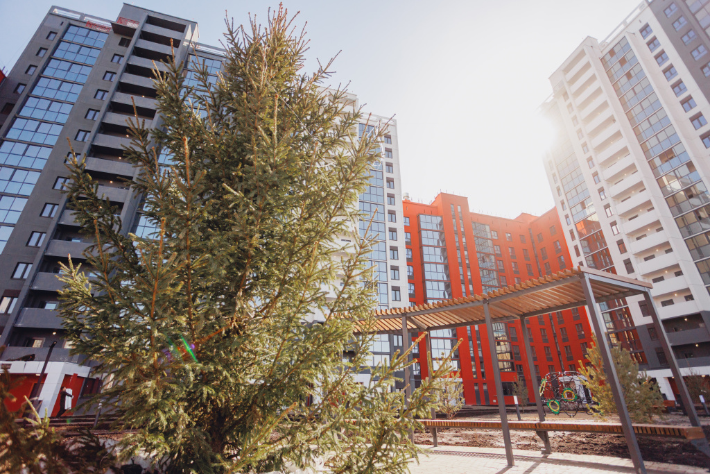 Жилой комплекс “Симфония” отличается уютными внутренними дворами с оригинальным ландшафтным дизайном, огороженной территорией и отсутствием автомобилей, что делает их безопасными и удобными для отдыха и прогулок.