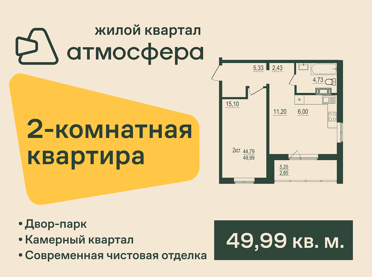 Жилой квартал «Атмосфера» — замечательное место для проживания! Малая и переменная этажность домов делает комплекс привлекательным для людей, которые стремятся к спокойствию загородной жизни и единению с природой.