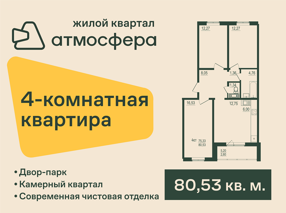 Жилой квартал «Атмосфера» — замечательное место для проживания! Малая и переменная этажность домов делает комплекс привлекательным для людей, которые стремятся к спокойствию загородной жизни и единению с природой.