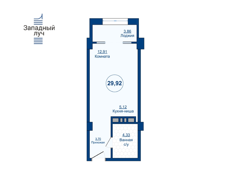 1 комната, 29.92 м², 12/25 эт