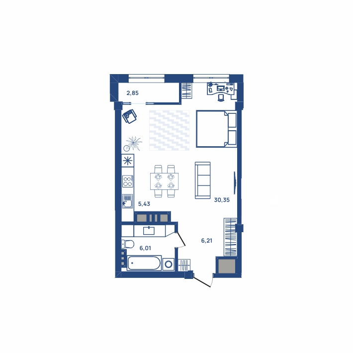 1 комната, 48.7 м², 5/23 эт