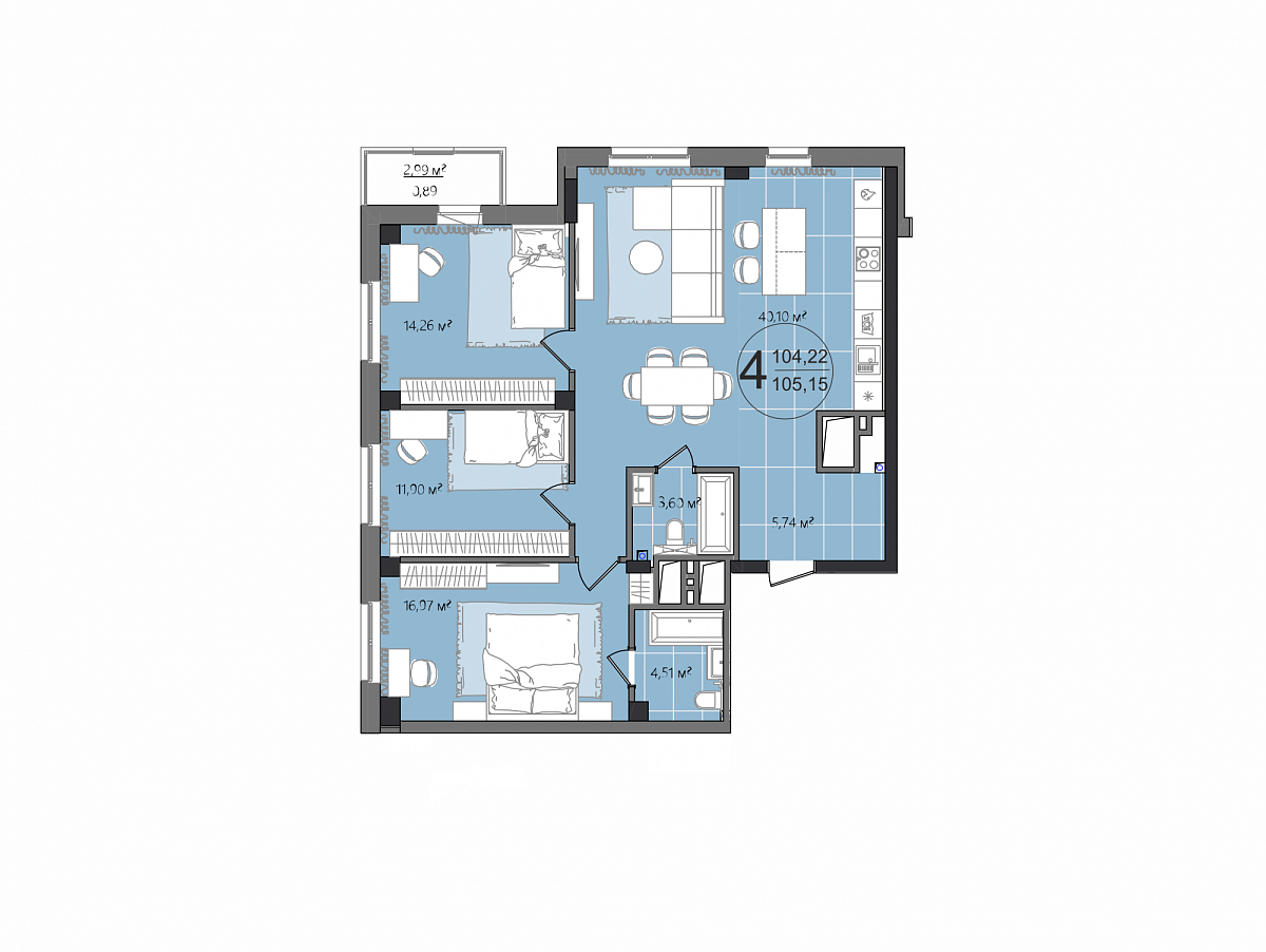 4 комнаты, 107.32 м², 19/25 эт