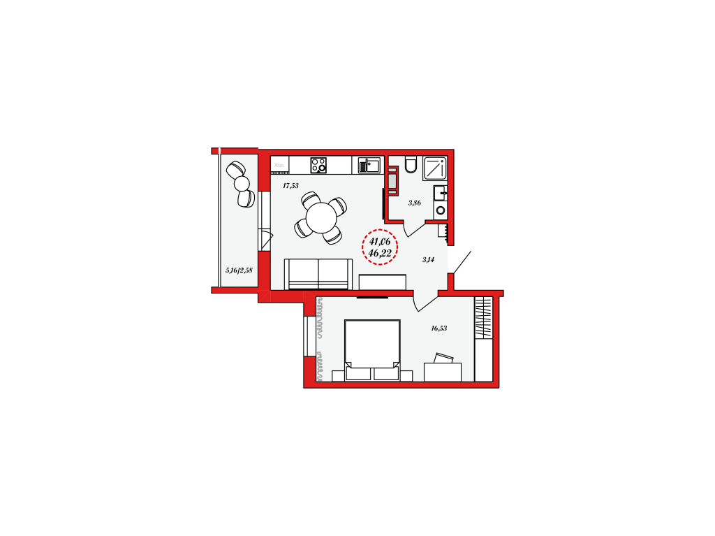 1 комната, 46.22 м², 2/8-11 эт эт