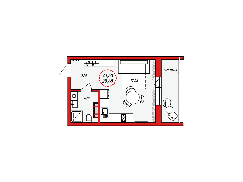1 комната, 29.69 м², 2/8-11 эт эт