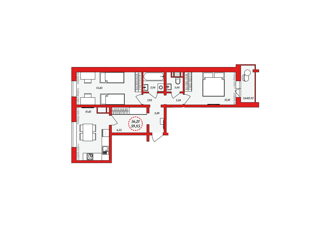 2 комнаты, 59.85 м², 3/8-11 эт эт