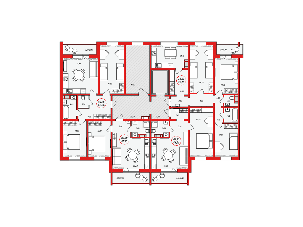 В жилом комплексе «БЕРЕГ» представлено свыше 20 планировочных решений от компактных студий до просторных трехкомнатных квартир для большой семьи. Дворы и парадные созданы все условия для комфортного проживания и веселого детства. В каждом подъезде дизайнерская парадная. Дворы с ландшафтным дизайном и игровыми и спортивными площадками для разных возрастов.