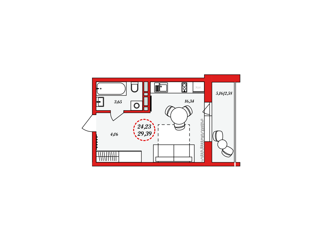 1 комната, 29.39 м², 2/8-11 эт эт