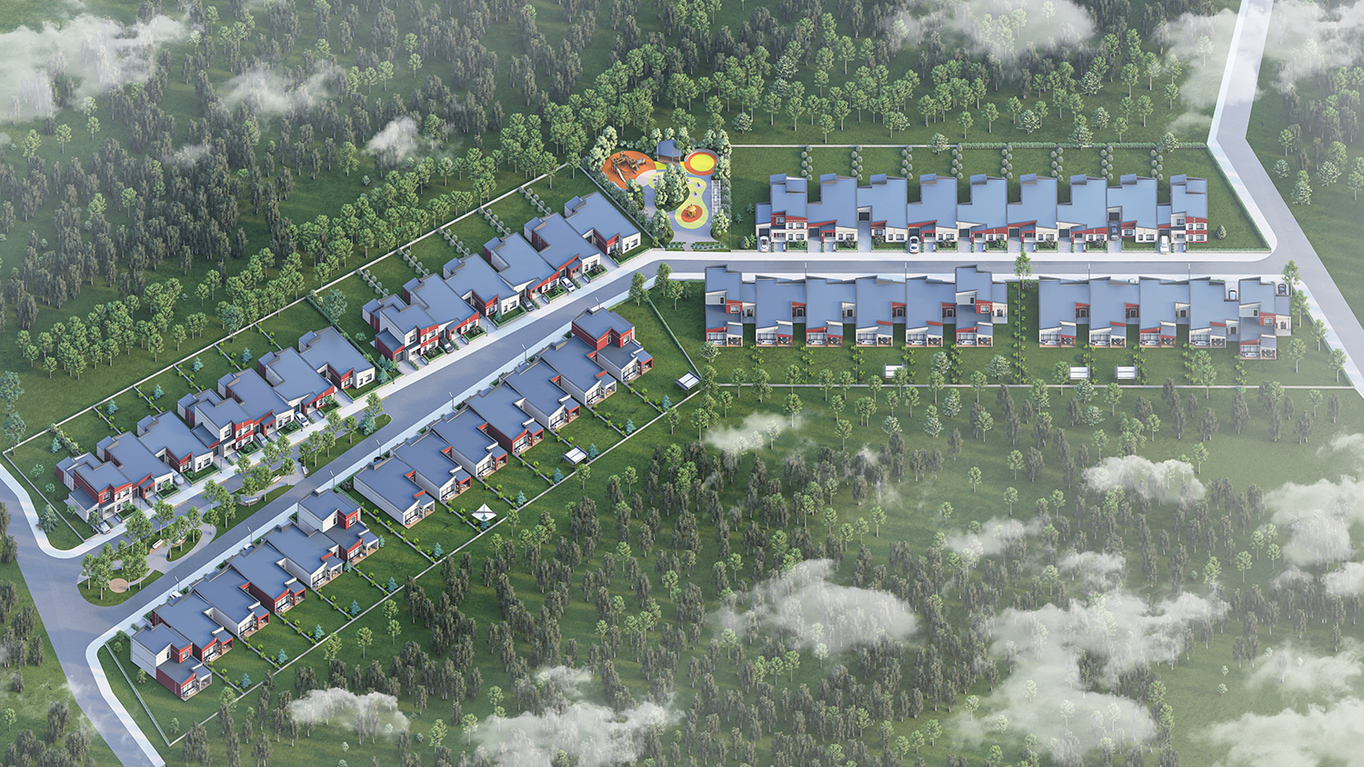 В «Деревне» будет построено всё необходимое для комфортной, загородной жизни: магазины и сервисы, прогулочные улицы, лесные тропы, озеро и велодорожки. Жители смогут заниматься спортом, встречаться с соседями и проводить время с друзьями.