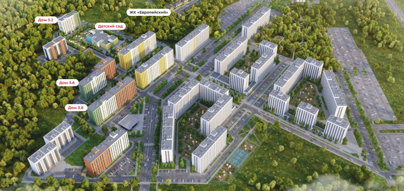 Территория жилого комплекса будет огорожена и обустроена для комфортного проживания. Проектом предусмотрены современные игровые и спортивные площадки для детей и взрослых, что делает его идеальным местом для семейной жизни.