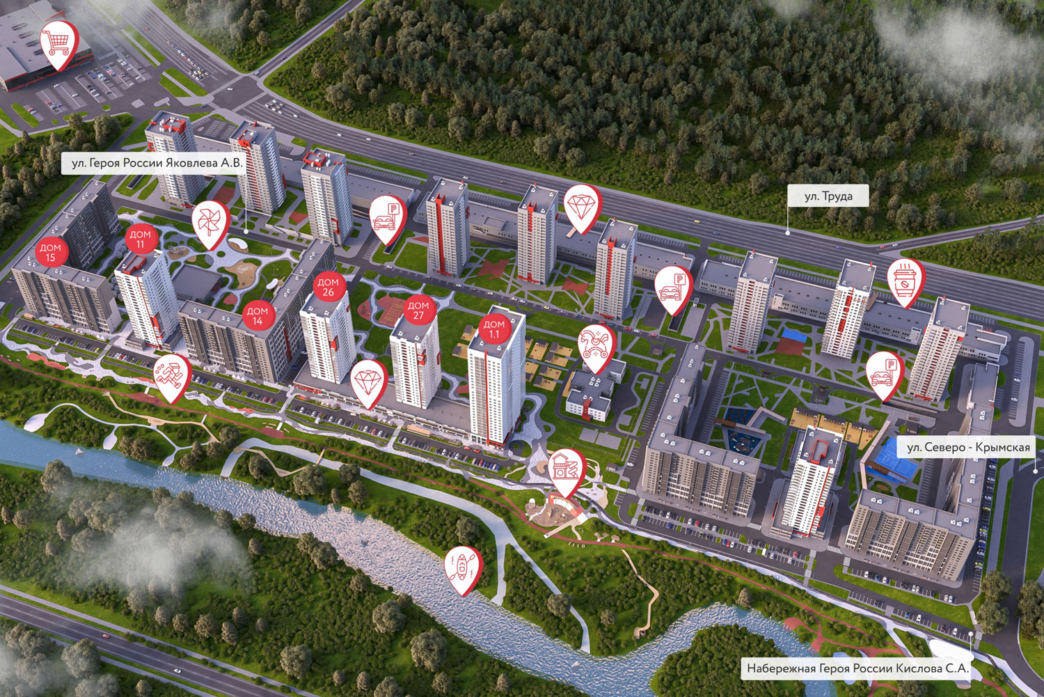 ЖК «Манхэттен» расположен в самом сердце Челябинска — рядом с живописной набережной реки Миасс и парком им. Гагарина. Уникальная локация сочетает городскую инфраструктуру и природу, создавая комфортное пространство для жизни и отдыха.