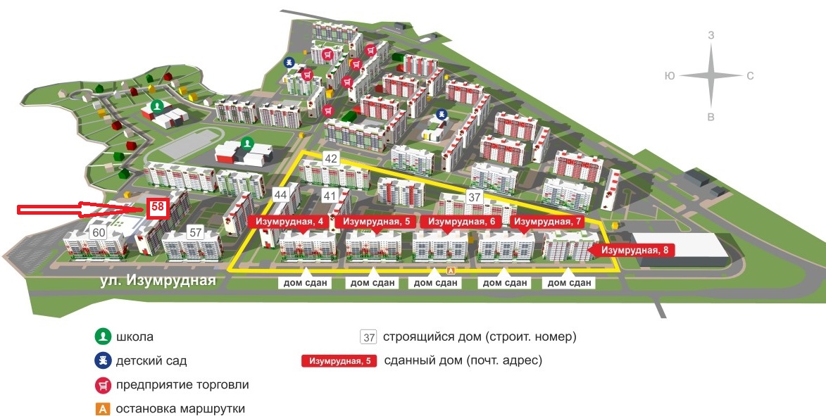 А рядом с домом № 58 разместится торговый центр с сетевым супермаркетом.