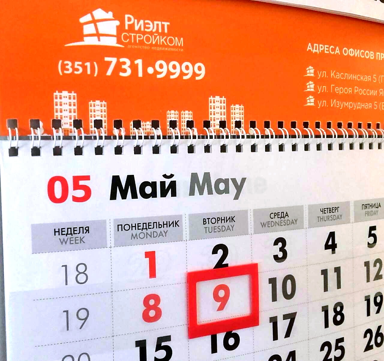 | Офис на ул. Каслинской, 5 6 мая офис не работает. 8 и 9 мая - праздничные дни, офис не работает. С 10 мая офис работает в прежнем режиме. | Отдел сопровождения 6 мая отдел работает с 10:00 до 17:00 8 и 9 мая - праздничные дни, отдел не работает. С 10 мая отдел работает в прежнем режиме |