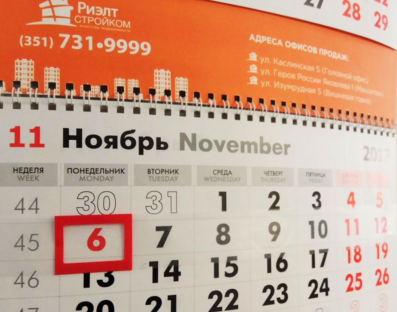 5, 6 ноября - офис не работает.