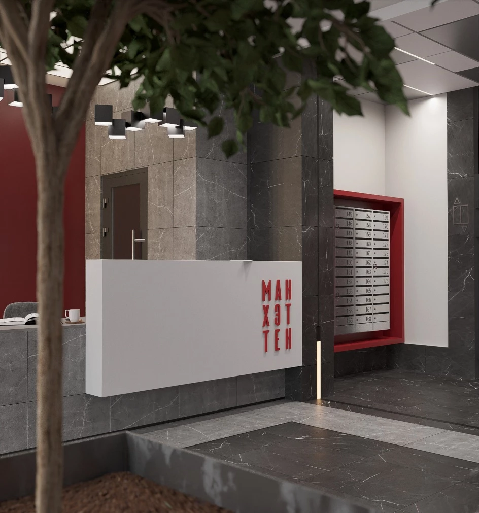 | Места общего пользования в домах ЖК «Манхэттен» отличает индивидуальный дизайн |