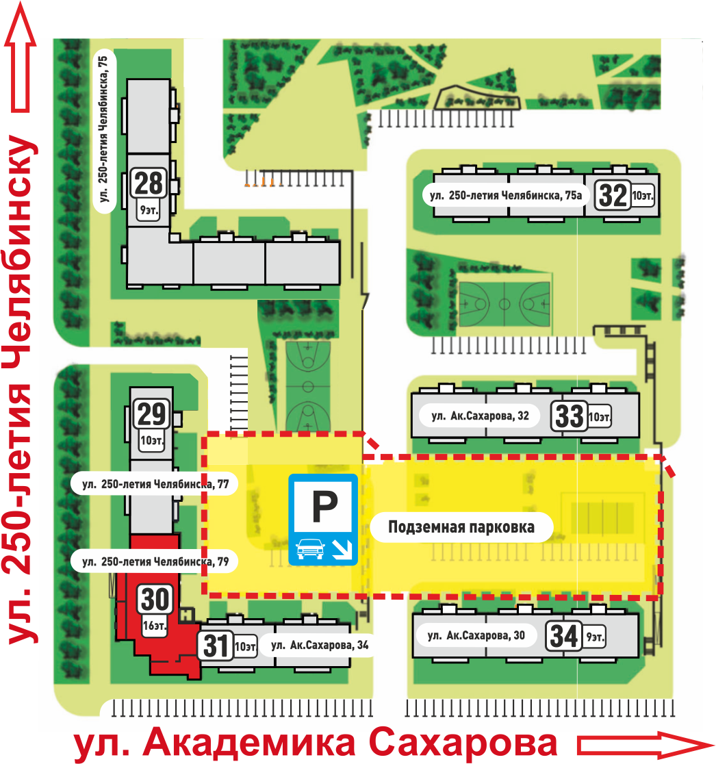 - для владельцев квартир в домах № 77 (стр.29) и №79 (стр.30) по ул. 250-летия Челябинска и в доме №34 (стр.31) по ул. Ак. Сахарова