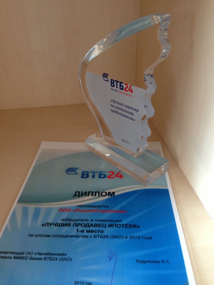 Спешим поделиться с вами радостной новостью. Наш партнер по ипотечному кредитованию банк «ВТБ24» подвел итоги 2012 года и назвал лучших челябинских партнеров за этот период.