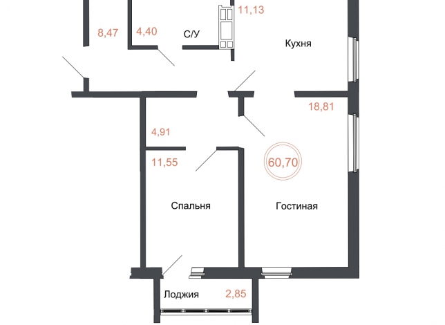 60.70 м2