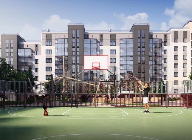 Просторный закрытый двор-парк с зелеными насаждениями и пешеходными дорожками создает уютную атмосферу и располагает к общению между жителями. Благодаря приватному двору без автомобилей, дети и взрослые чувствуют себя безопасно и свободно.
