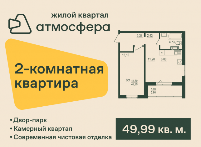 Жилой квартал «Атмосфера» — замечательное место для проживания! Малая и переменная этажность домов делает комплекс привлекательным для людей, которые стремятся к спокойствию загородной жизни и единению с природой.