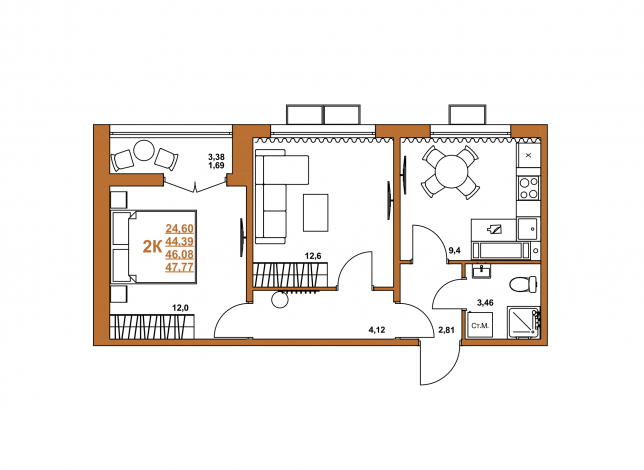 | 130 | 7 | 46.08 м2 | 5 944 320 руб. |