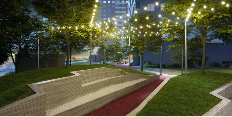 На территории, будут установлены места для отдыха, ведь так приятно вечерами провести время в компании друзей на свежем воздухе, или просто отдохнуть с книгой в руках.