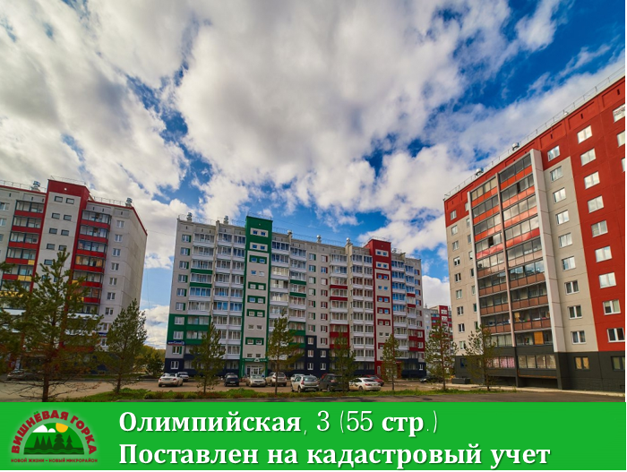 Ему присвоен почтовый адрес ул. Олимпийская, 3, а так же, дом поставлен на кадастровый учет и теперь Вы можете оформить право собственности на квартиру.