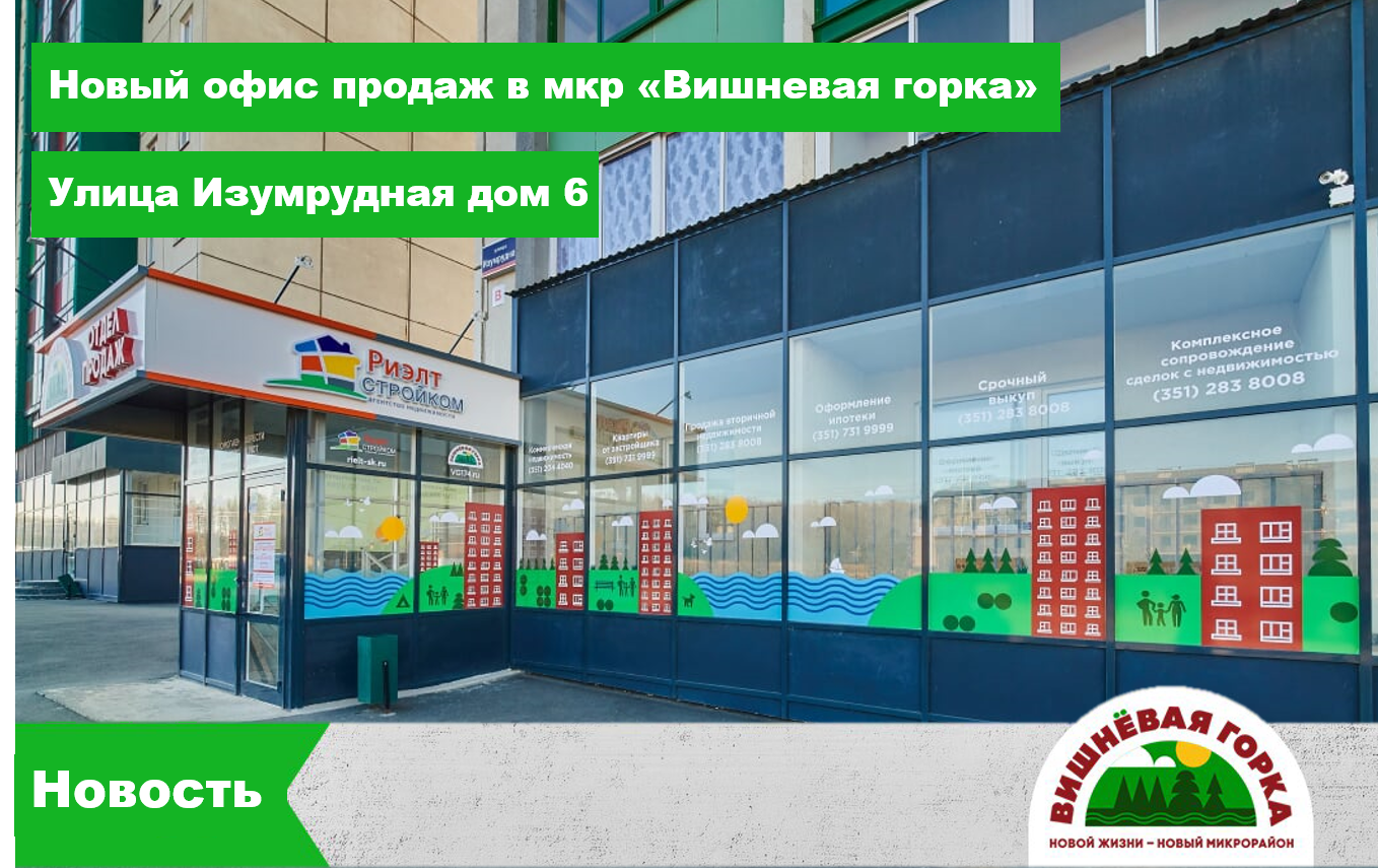 Наш офис в микрорайоне "Вишневая горка" теперь стал больше, красочнее и комфортнее. А все потому, что теперь находится по новому адресу улица Изумрудная, дом 6.