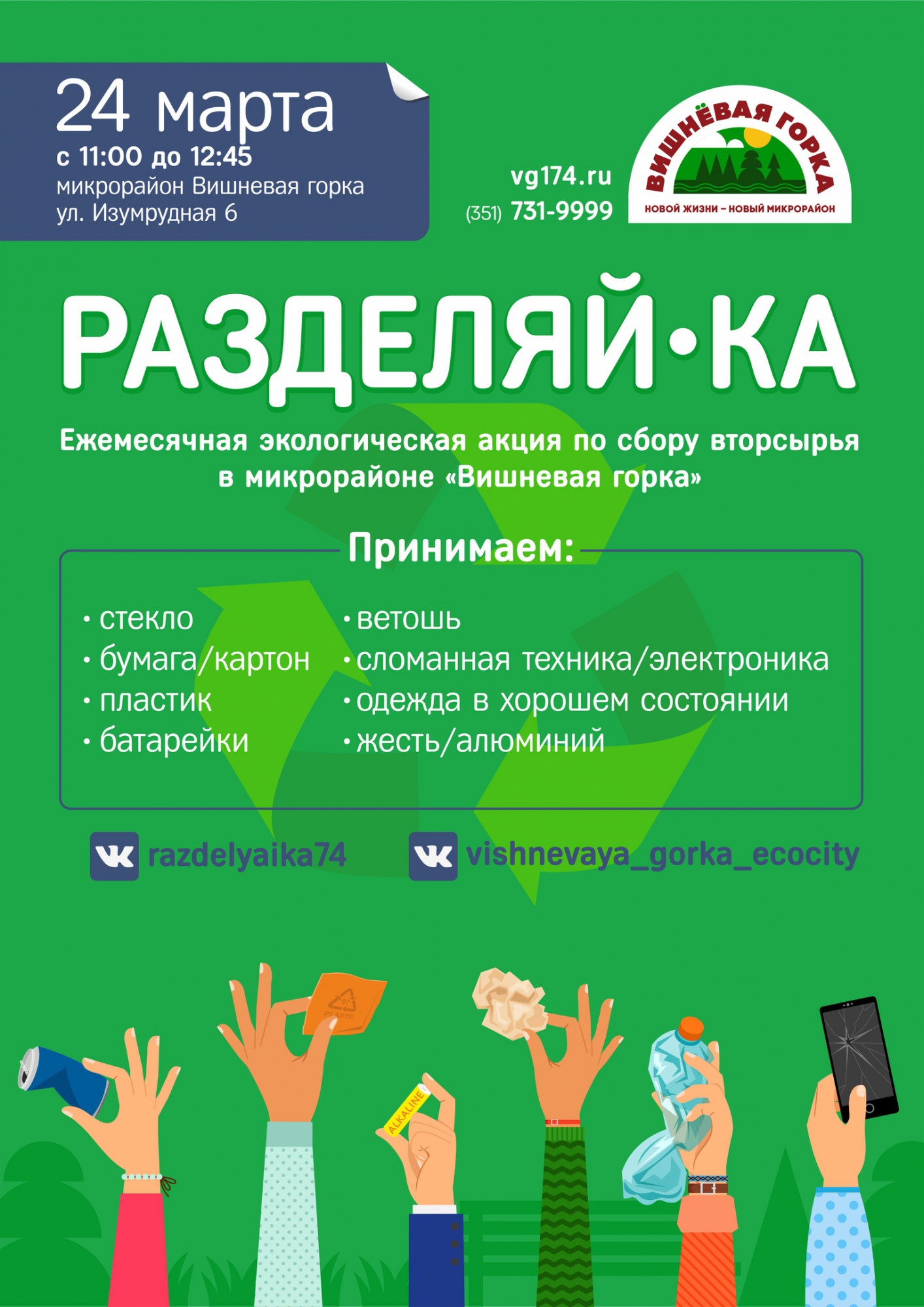 Ждем жителей и гостей микрорайона "Вишневая горка" на акции "Разделяйка" с 11.00 до 12.45.