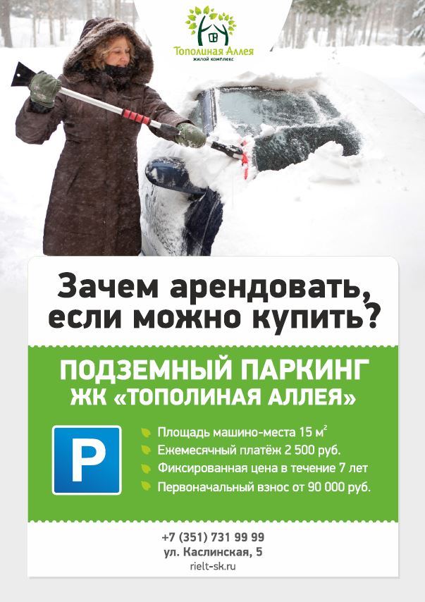 В преддверии сезона, для своих любимых жильцов, которые еще не приобрели собственное машино-место, а также их гостей, застройщик запускает акцию: «Парковочные места в рассрочку на 5-7 лет с первоначальным взносом от 30% без удорожания».