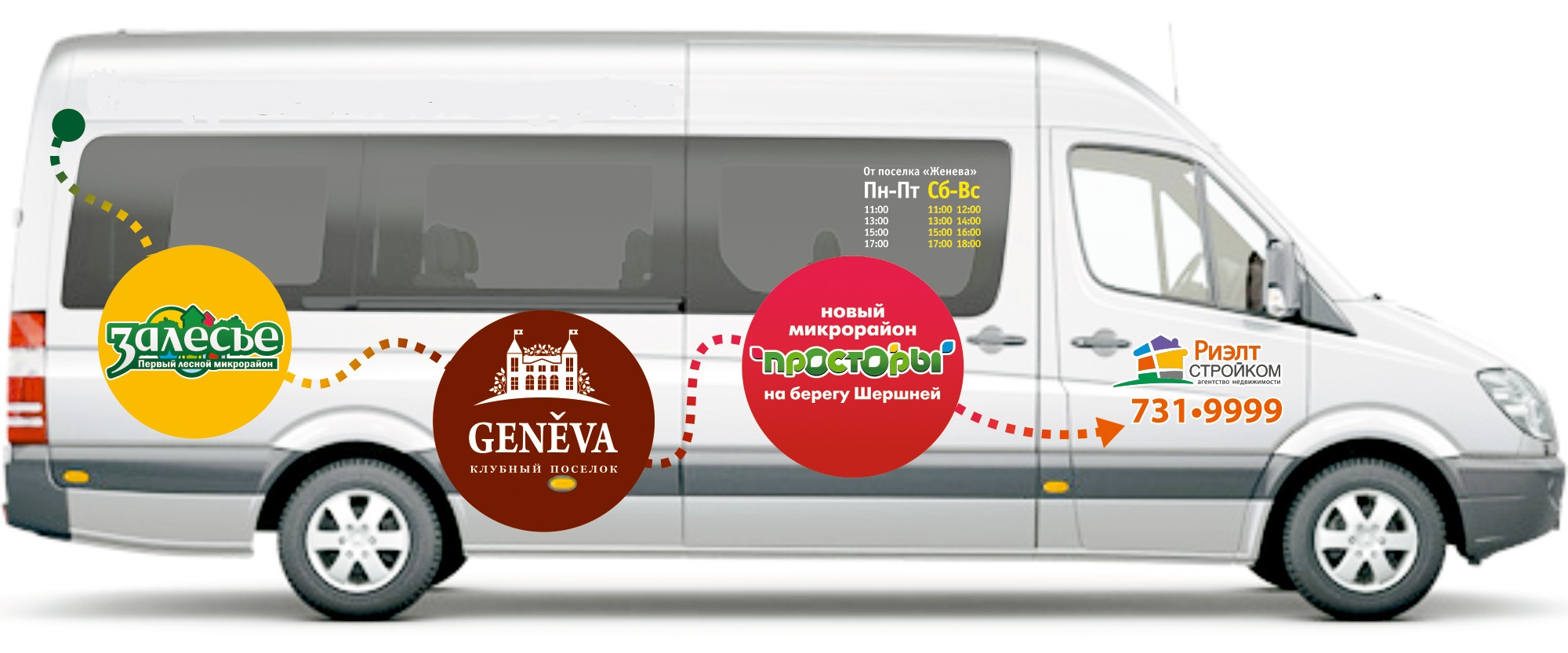 Наш удобный фирменный микроавтобус заберет вас у одного из офисов продаж (на ул. Каслинской, 5 или ул. Бр. Кашириных, 152) или на ост. Плотина на Шершневском водохранилище, свозит в «Залесье», «Вишневую горку» и «Женеву», а после привезет назад.